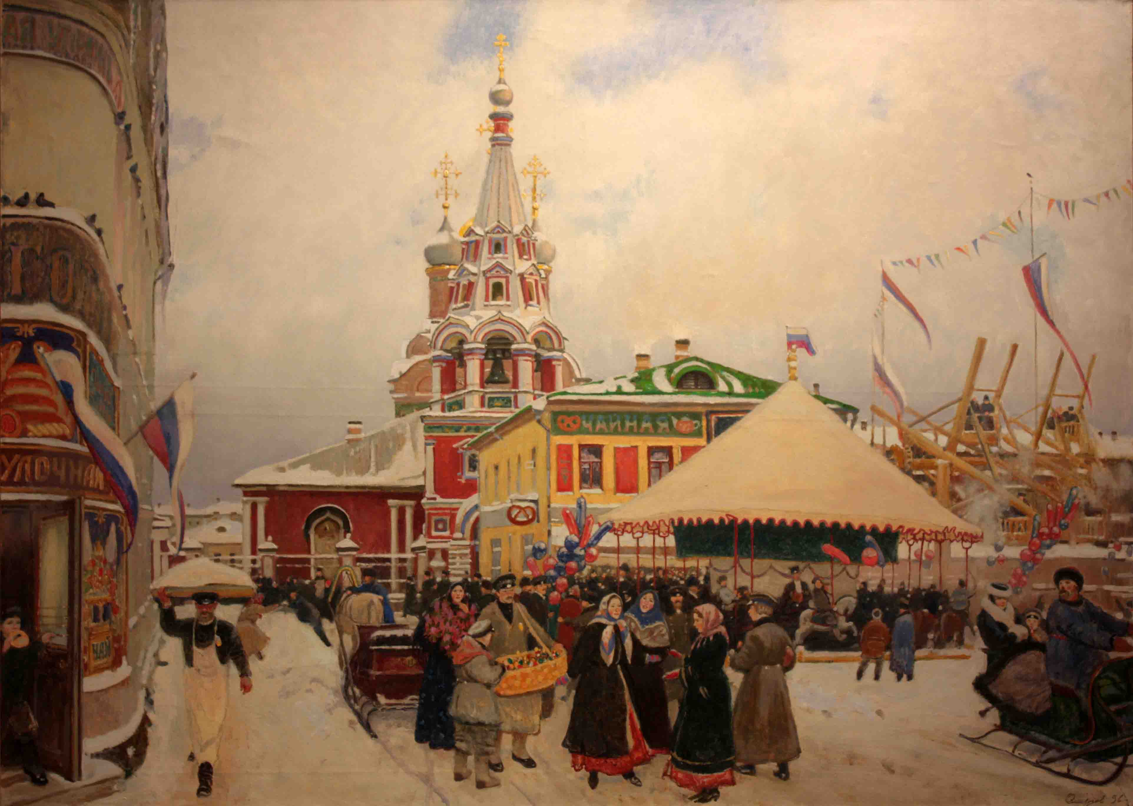 К теме написания Москвы обращались многие художники, начиная от исторических реконструкций Васнецова и заканчивая индустриальной Москвой Ю.Пименова.