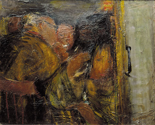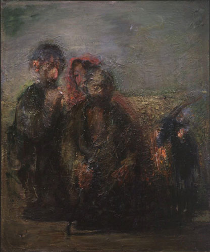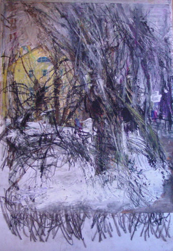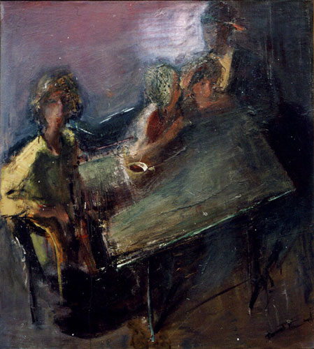 Художник не спорит ни с кем и ни с чем, он просто переживает пластическое событие, словно выполняя завет Р.Фалька, считавшего, что именно в этом и состоит суть живописи. И всякий раз он находит неожиданное решение. Если небольшая по размерам картина “Два курильщика” отличается классически выверенной композицией и цветом, точно имеющем плотность, тяжесть и массу, то, например, полотно большого формата “Базар” (2003) заполнено лишь наполовину, хотя названия, казалось бы, предполагают иное воплощение сюжета, тем более в фигуративном варианте.