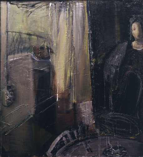 На заре постмодернизма художники с увлечением приглашали к себе в мастерскую, например, Вермеера. Прямые диалоги с конкретными цитатами затем сменились стремлением соединить в одном полотне самые разные художественные языки с целью прийти к некоему новому синтезу. “Интерьер с желтой занавеской” (2001) неведомо почему обращает память к “Девушке с письмом” Вермеера. Но если что и роднит картину Флегонтова с произведением голландского мастера, то это опять же тишина. Та удивительная тишина, когда за простым и мало значительным самим по себе фрагментом мира встает сам мир.