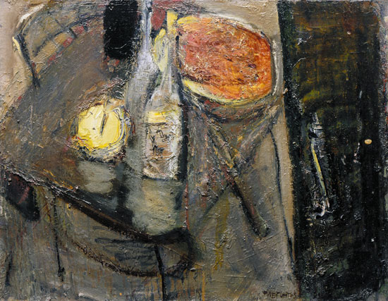 Предметный мир натюрмортов Флегонтова не менее выразителен в этом контексте. Художник продолжает линию, идущую еще от Шардена - простые, “здоровые” предметы повседневного пользования получают в его картинах плотность и весомость тех жизненных реалий, с которыми не поспоришь. Натюрморт в ХХ веке стал жанром, где решались глубокие проблемы формального языка живописи, что существенно и для Дмитрия. Он ищет в них способ воплотить сложную пространственную взаимосвязь предметов между собой, их приближение к зрительному пространству и удаления внутрь картинного. Но при этом для художника крайне важно ощущение самого предмета как частицы живого мира, а не мертвой натуры.