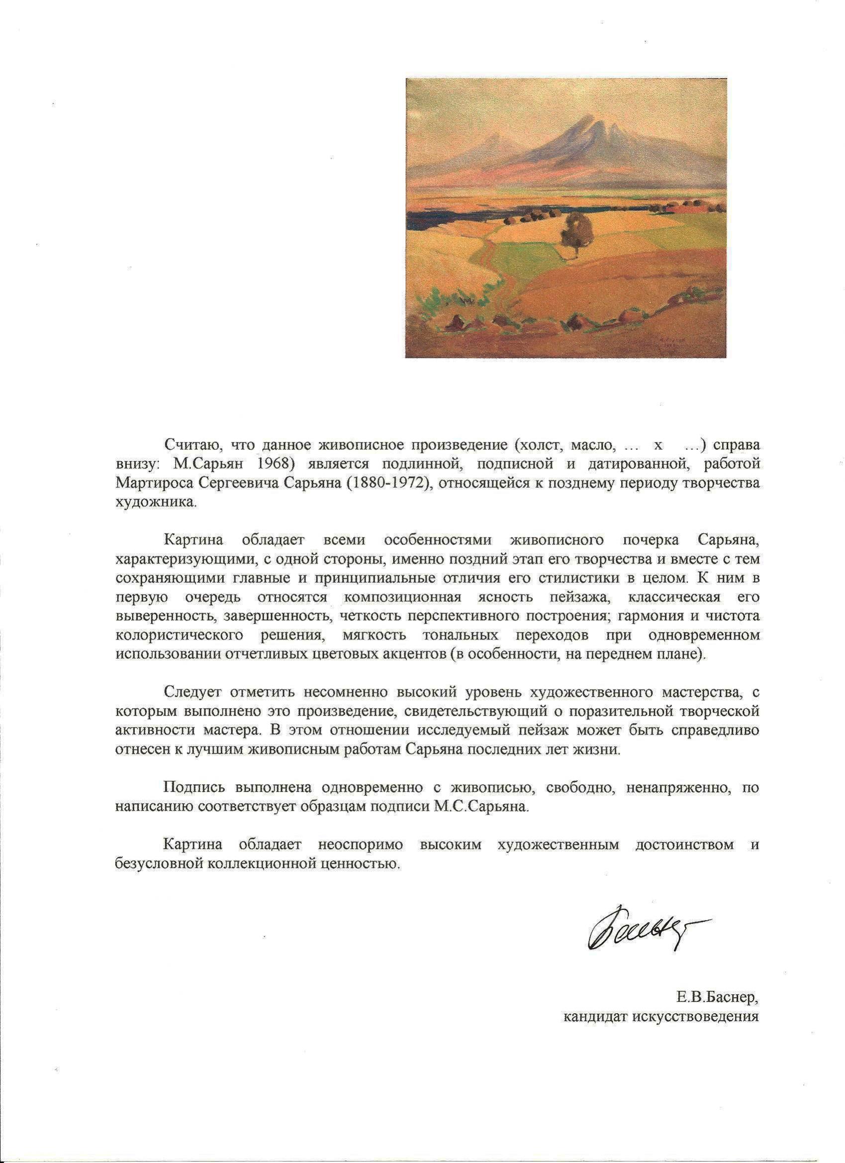 И на двух страницах разгромная настоящая экспертиза Рузан Сарьян, камня на кмне не оставляющая ни от Русского Музея ни от Баснер. Стоит ли говорить, что суд Смольнинского района решил не приобщать письмо Рузан Сарьян к делу :) |