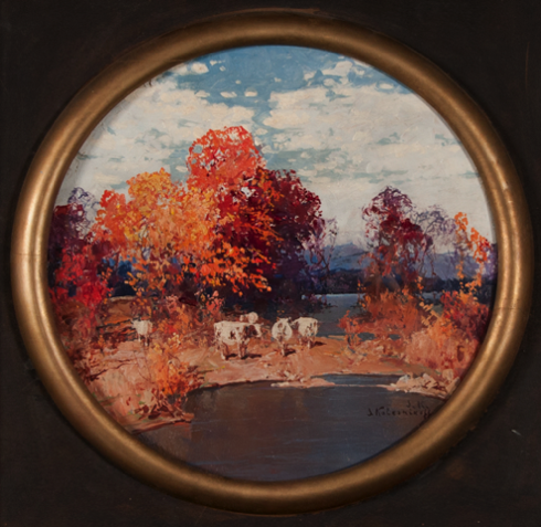 19 апреля 2014 года Восточно - Европейский Антикварный Дом проведет уникальный аукцион «Русская живопись XX века». В коллекции уже десятого по счёту аукциона будет представлено 225 великолепных произведений русского искусства XX века. Вниманию российского зрителя буду представлены работы Владимира Муравьева, Николая Дубовского, Степана Колесникова, Николая Карахана, Александра Шилова и других мастеров. С конца 1980-х годов немалое количество таких произведений было вывезено на Запад. Они выставлялись на аукционах, приобретались частными коллекционерами, оседали в экспозициях галерей и музеев. И с каждым годом живопись советских времен встречается всё реже. Картины из этой коллекции хорошо известны специалистам, значительная часть которых неоднократно публиковалась в отечественной и зарубежной научной литературе, а также каталогах различных выставок. Коллекция русской живописи XX века Восточно-Европейского Антикварного Дома позволяет проследить, как появлялись и сменялись течения и направления в живописи: начиная от классицизма и заканчивая современностью. Яркими представителями русской академической школы являются Юлий Юльевич Клевер, граф Муравьев, а также их последователи. Среди топ-лотов можно отметить работу «Тетерева на опушке леса» Владимира Муравьева. В истории русской живописи немало полотен, изображающих охоту как барскую забаву или крестьянский промысел с множеством охотников, ружей, сворами охотничьих собак и непременными охотничьими трофеями. Эта тематика всегда вызывала пристальный интерес и живое обсуждение. Картины В. Муравьева наполнены восторженным чувством искренней любви к родной природе. Любовь к родным просторам и самобытному колориту находит отражение в работах и других авторов в более поздний период. Вложение 2318541 Нельзя не отметить работу Николая Дубовского «Облако над полем», представляющую собой пейзаж, написанный в любимой манере художника. Пространство, свет и воздух передают спокойное, «штилевое» состояние. Исполненный на высоком профессиональном уровне натурный этюд создает романтическое настроение. Как и многие работы художника, заслужившего мировое признание, этюд представляет музейную и антикварную ценность. Вложение 2318551 В работе Степана Колесникова «Осень» запечатлен яркий осенний полдень, пронизанный первой прохладой. Спокойное, созерцательное настроение задают мирно пасущиеся коровы у водопоя. Художник навсегда сохранил верность реалистическим традициям, которые превалировали в его живописных работах. Эти мотивы были самыми любимыми в письме автора, поэтому картина сделана с особым трепетом и любовью. Еще при жизни автор получил признание и широкую известность, его работы приобретались музеем Императорской Академии художеств. Сейчас живописные произведения С. Колесникова хранятся в крупных отечественных музеях и частных собраниях, как в России, так и за рубежом. Вложение 2318561 Одним из ярких представителей русского авангарда можно назвать Николая Карахана. Работы автора разнообразны по тематике, колористическим и композиционным решениям, написаны с виртуозной лёгкостью. Яркой находкой вашей коллекции может стать работа «Голубые горы», где центральное место занимают величественные ташкентские горы, создающие могучий образ, а игра солнечных лучей добавляет