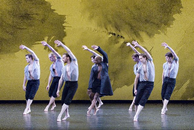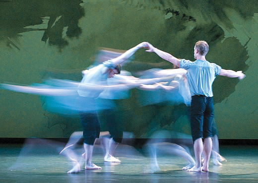 Захотелось сверить свои ощущения, и, выяснилось, что нечто подобное, вероятно, нашел у художника и американский хореограф Марк Моррис (тот самый, которого балетные критики называют Моцартом современного танца). Иначе с чего бы он заказал Ходжкину декорации к своему циклу «Танцы Моцарта»? Художник оказался на высоте задачи: фоном к Mozart Dances он выбрал белую поверхность с брошенными на нее тремя большими сгустками темной краски, подобными смазанным отпечаткам пальцев. Этот фон, повинуясь ритмам музыки Моцарта, расцвечивают осветительные установки. Вот взгляните, как это здОрово смотрится: Вложение 772161 Вложение 772171 Вложение 772181 Вложение 772191 |