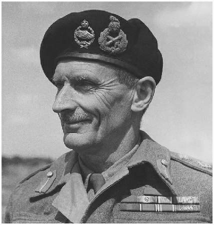 Получился графический портрет с растушевкой, выполненный черным и белым мелом. К сожалению, мне удалось с трудом достать лишь не очень качественную репродукцию (см. 6). Художник Сэм Морзе-Браун (Sam Morse-Brown, 1903 - 2001). Оригинал находится в Имперском Военном музее (Imperial War Museum), Лондон. Считается одним из наиболее удачных портретов Монтгомери: сам он хотел оставить его себе, но все-таки пришлось отдать в музей. Это - не парадный портрет, таких портретов с Монтгомери писано много (см. например, 7), даже баловавшийся живописью Дуайт Эйзенхауэр его писал, но многие - не очень удачны, лицо "не схвачено". Сравните с его наиболее известными фотографиями (см. 1 - 5): все-таки такое лицо трудно написать.