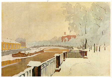 "Ленинград. Фонтанка и Летний сад в инее" 1929 г. Б., акв. 36,7х51,7. Государственная Третьяковская Галерея: