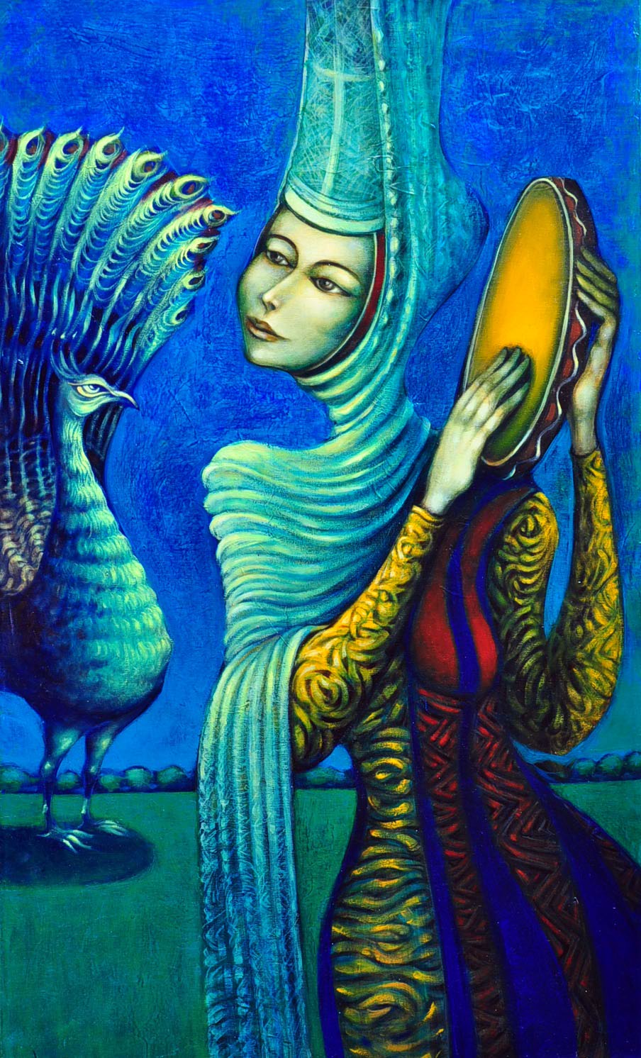Персонажи Левона - яркие, запоминающиеся, характерные личности. Они не расплывчатые, инфантильные символы, наоборот, они наделены внутренним стержнем, благодаря чему не только твердо стоят на земле, но и …умеют летать. В пышном, средневековом наряде королева пристально ловит твой взгляд, вопрошая: “ Не узнаешь меня, это я-соседка, которая торгует фруктами в ближащем магазине? А ведь я, в действительности,- королева, просто это не сразу видно”.