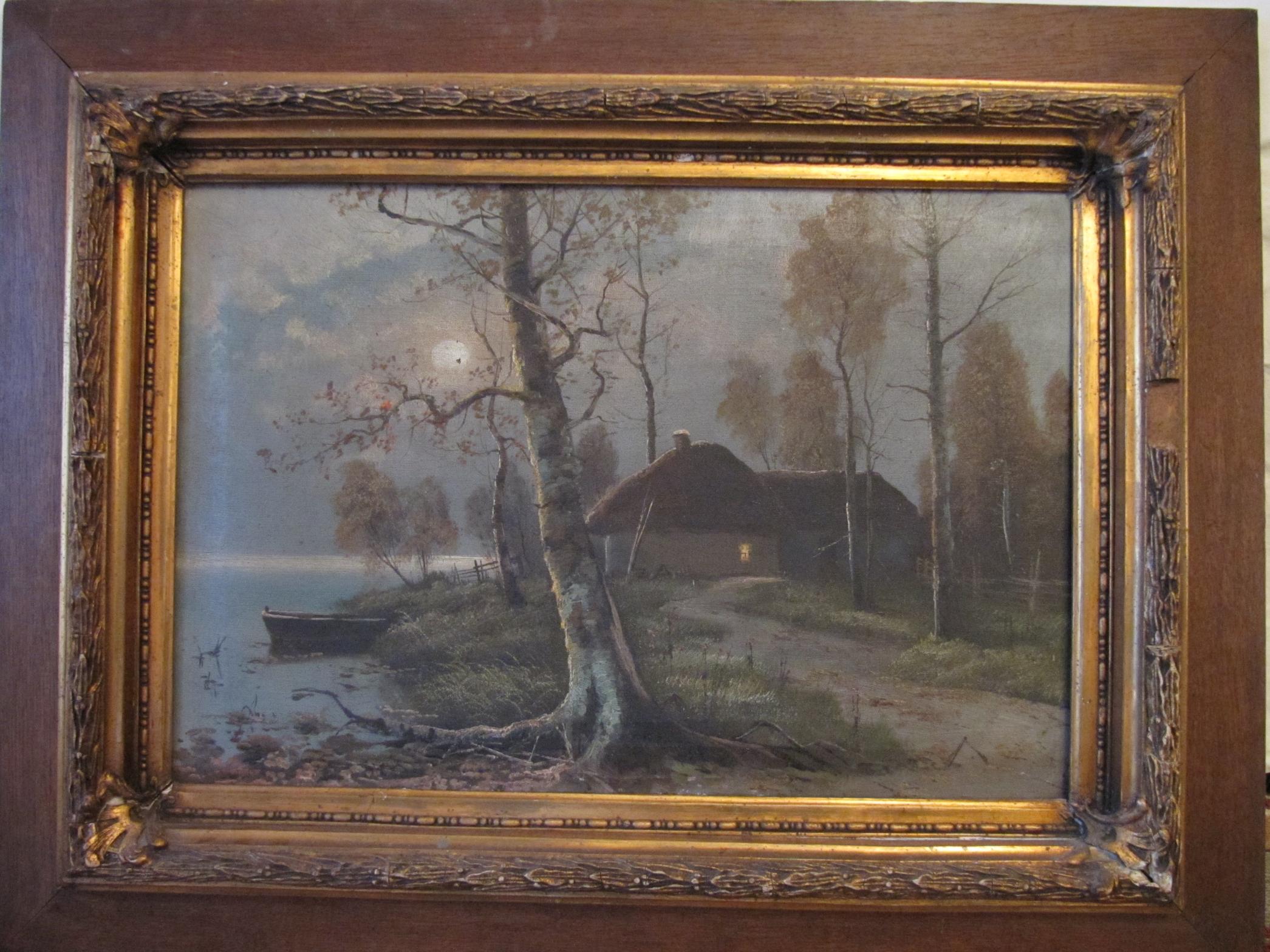 картина досталась от пра пра бабушки...соотвественно это где то конец 19века. на сколько я понимаю, это холст и масло. картина нигде не подписана...если это что то даст, то сзади в багет воткнуты канцелярские кнопки phelix №2, размер подрамника 71*48
