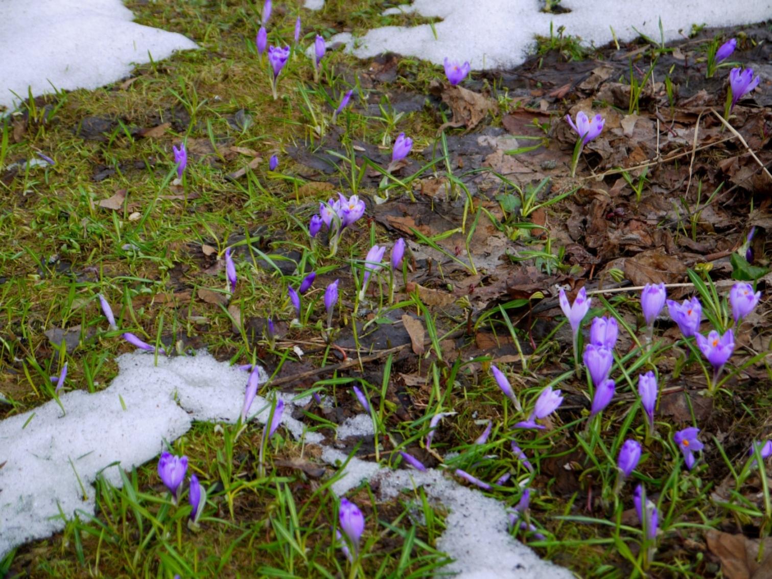 7.8. …. А первыми у нас появляются крокусы, прямо из-под снега. Откуда они взялись - никто не знает. Специально никто не сажал. Может ветром надуло....