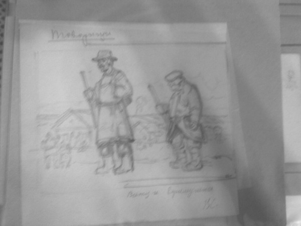 Картон, карандаш, акварель. 7,8х13. 2. Соколов В.И. (1872-1946) «Товарищи. Витц