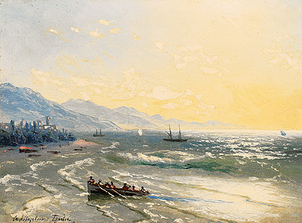 Василий Адамович Бржевский, один из учеников великого мариниста, как самостоятельный художник себя не проявил, но был хорошим копиистом работ Айвазовского. На аукционных торгах мне нередко встречаются копии Бржевкого. И если работа, представленная под №2 «Крым с причаливающей гребной лодкой» на аукционе имела небольшую пометку «Последователь Айвазовского», то картина «Вид с террасы дома художника в Феодосии» выдается, как полотно самого Айвазовского и при небольших размерах (19х31) оценивается в 30 000 – 35 000 фунтов стерлингов.
