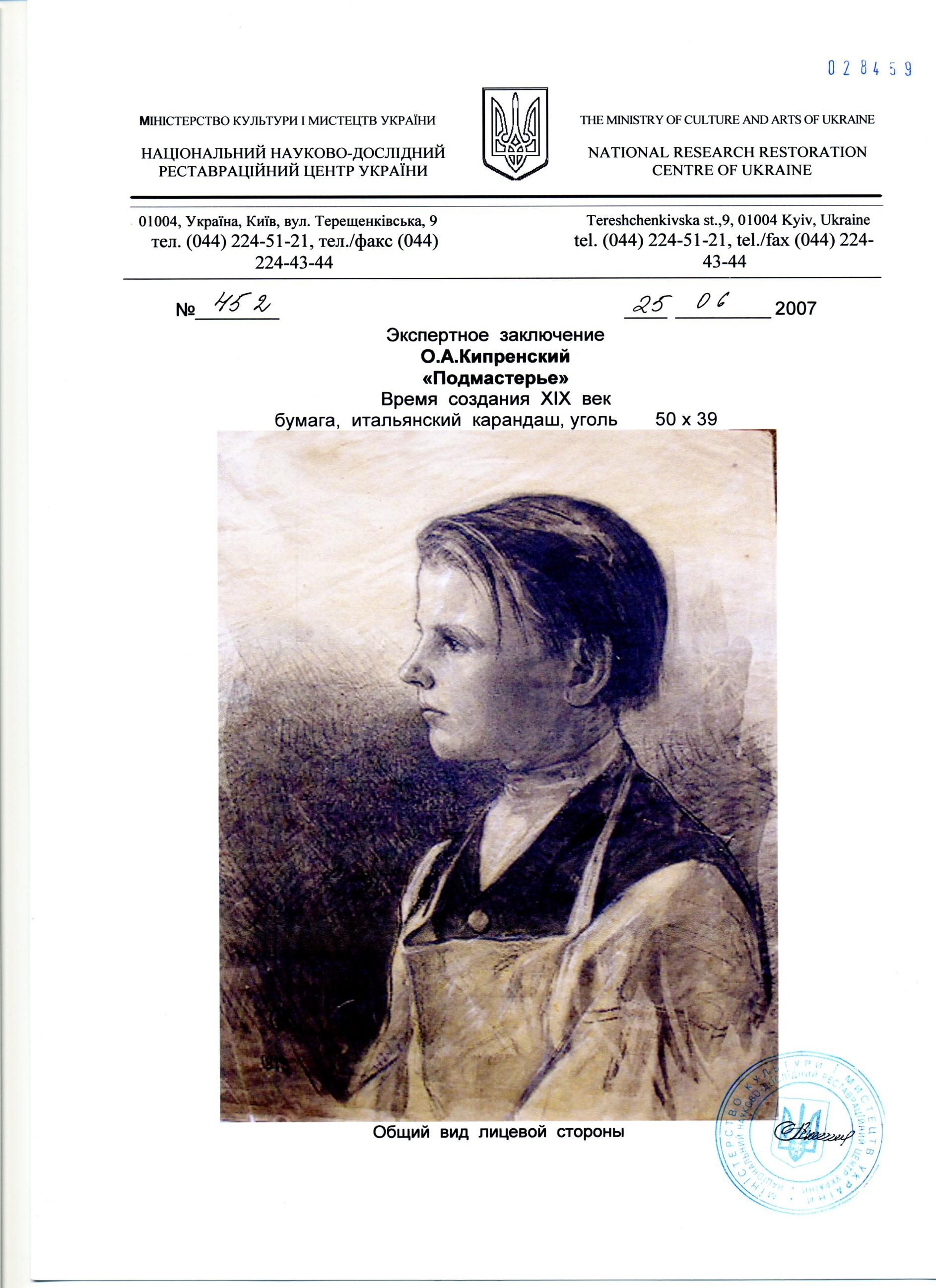 Портрет" Мальчик подмастерье".Экспертиза Бычко Т.А.