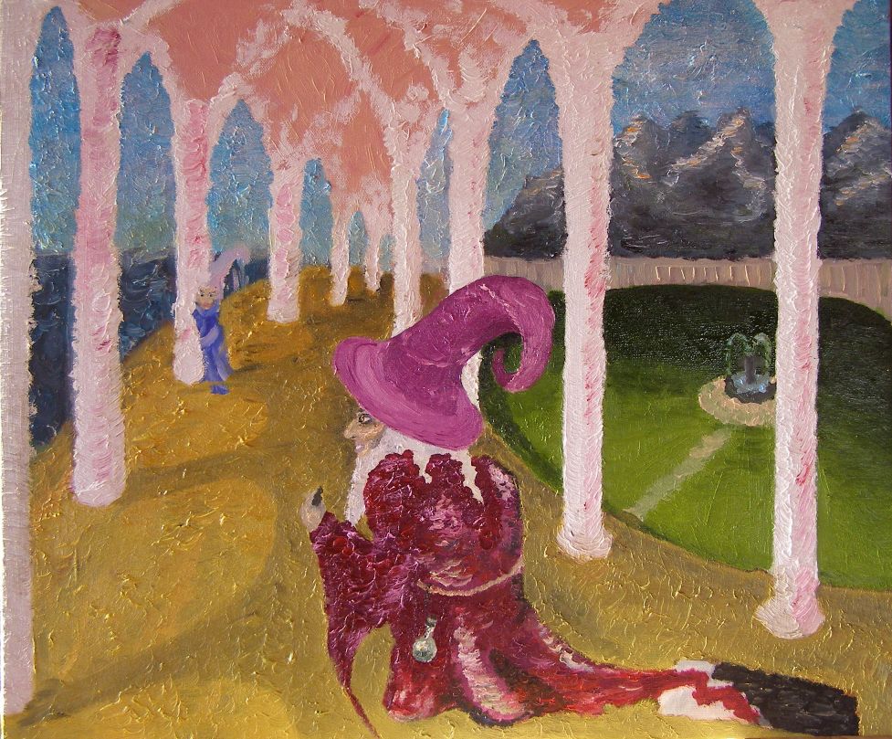 4. " Wizard and the Princess ." Oil on canvas on cardboard. 60x50 ( cm). Not completed.