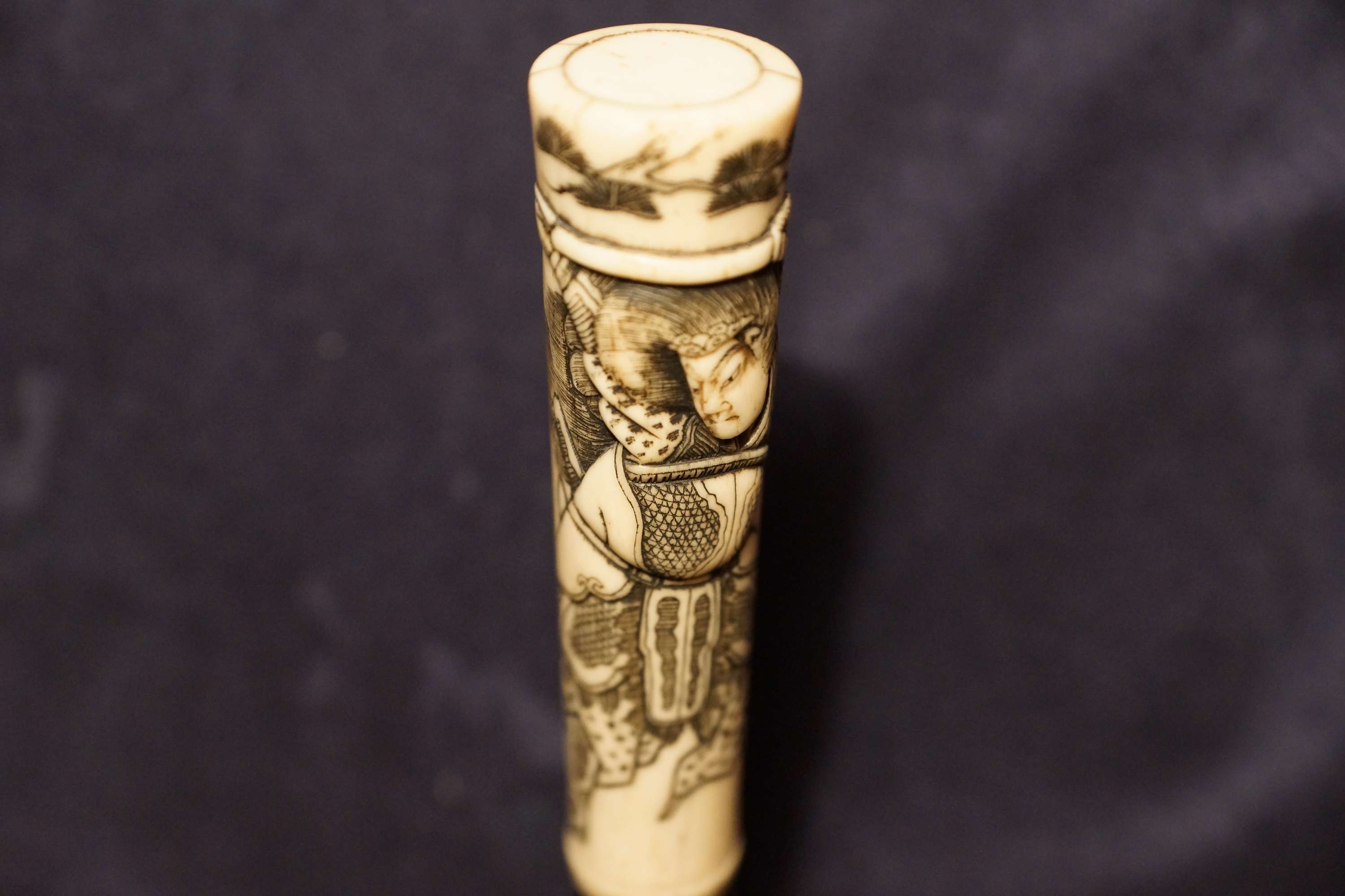Antique cane Japanese warrior with a handle of ivory "Samurai ." Japan , XVIII century.