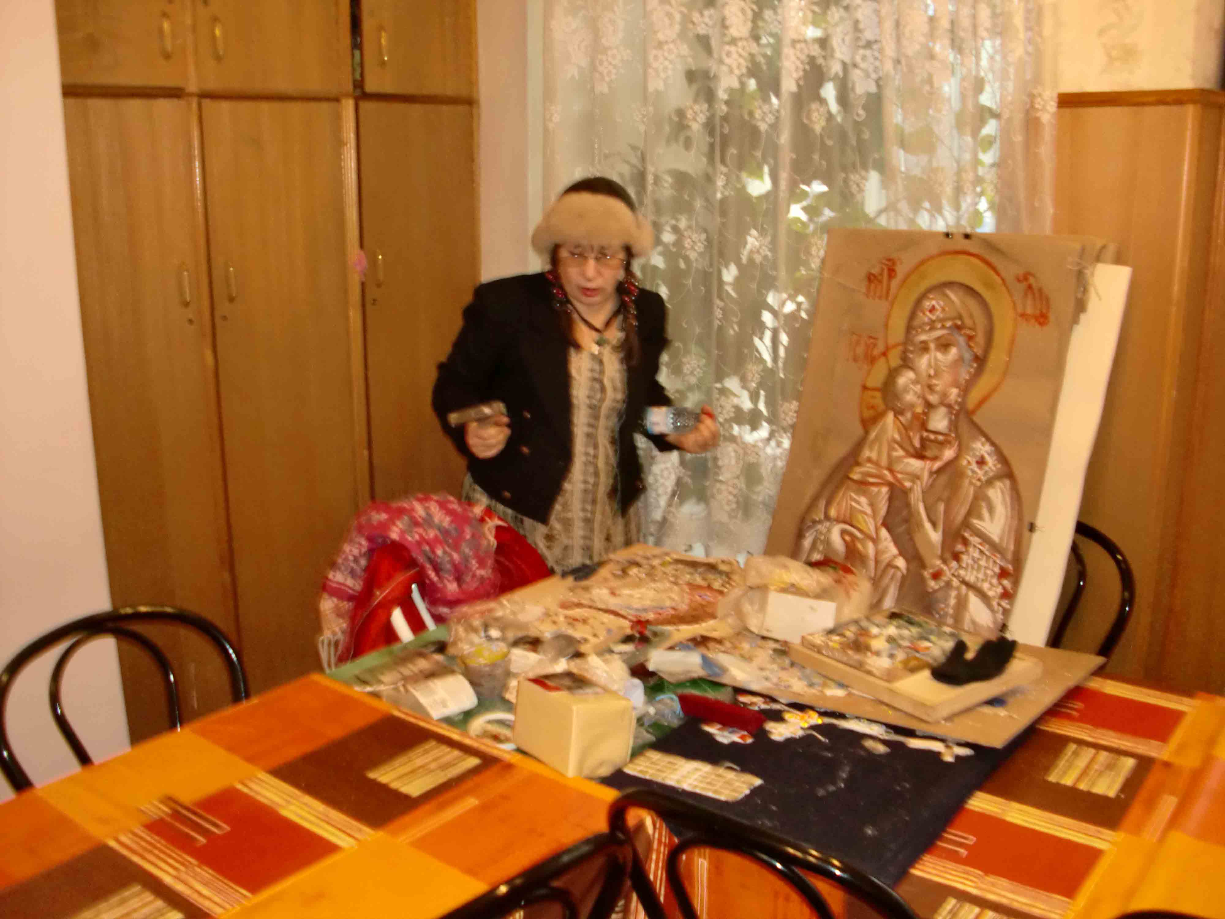 And then genuinely distressed, Sasha told that his first job was breaking three times, she and friends helped in the transportation, storage and exhibitions, and every time it restored his first job which gave understanding the subtleties and secrets of the mosaic.