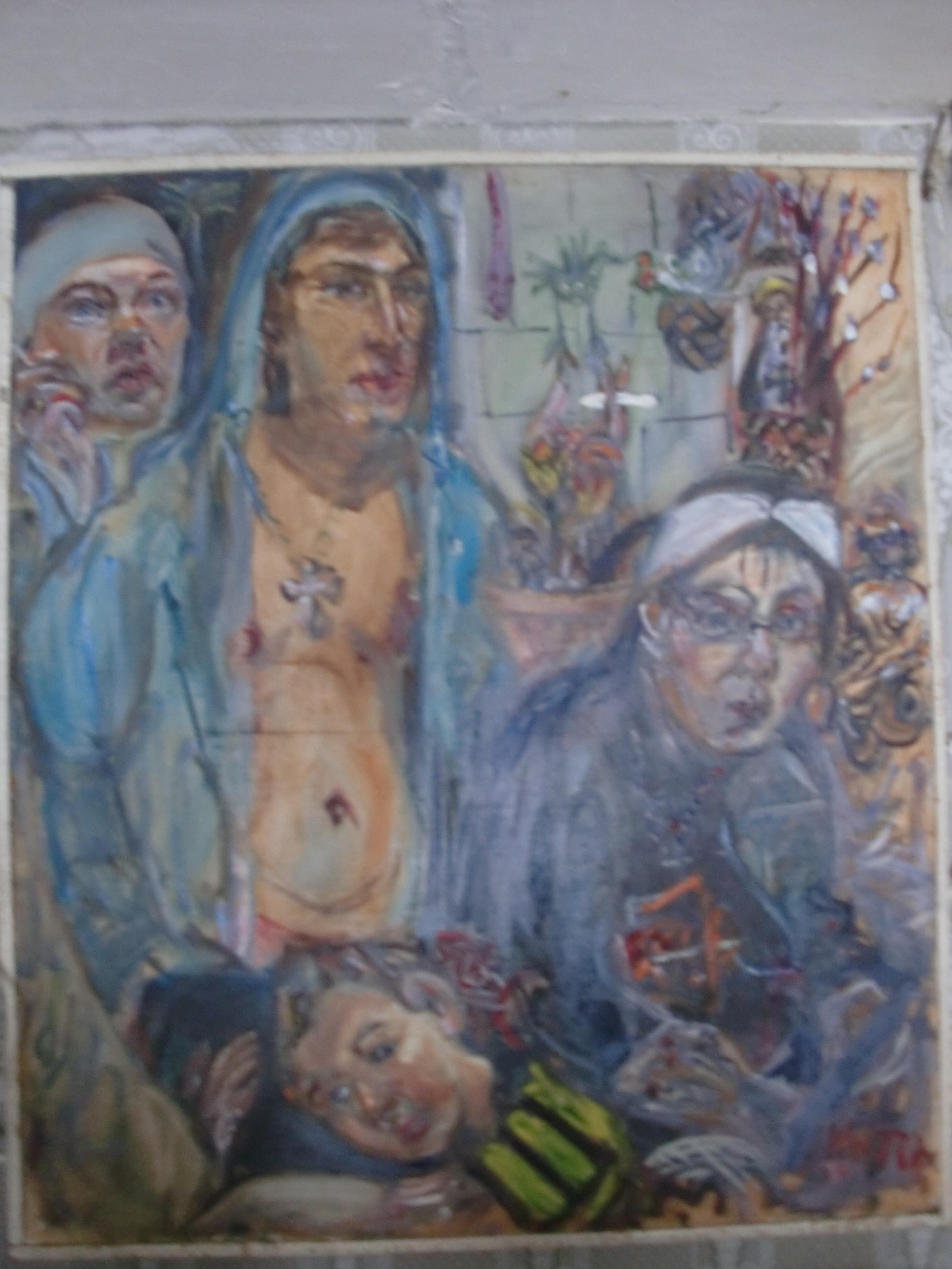 Is an angel of the Eucharist - a copy, almost stone to stone mosaics from Ravenna made the top tier of the wall. I was still in my first year in the "Stroganov" worked for MJ in '89. I shook his angel face major, red-green stroke face.