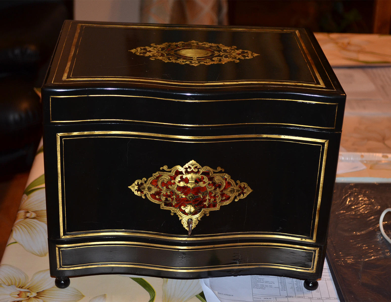 Франция, середина XIX века, дерево, черепаховая кость, металл. Стекло почти все позднее, начало XX-го, оригинальных осталось только 3 рюмки. поздние элементы подобраны безукоризненно. Состояние очень хорошее, но не идеальное.
