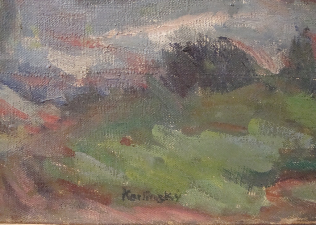 Помогите, с атрибуцией картины и определением её стоимости. Автор Карлинский(?), сер ХХ века. Заранее спасибо!