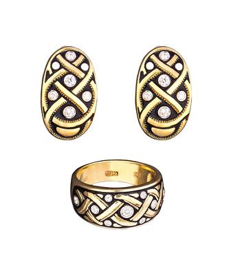 Комплект из бриллиантовых серег и кольца