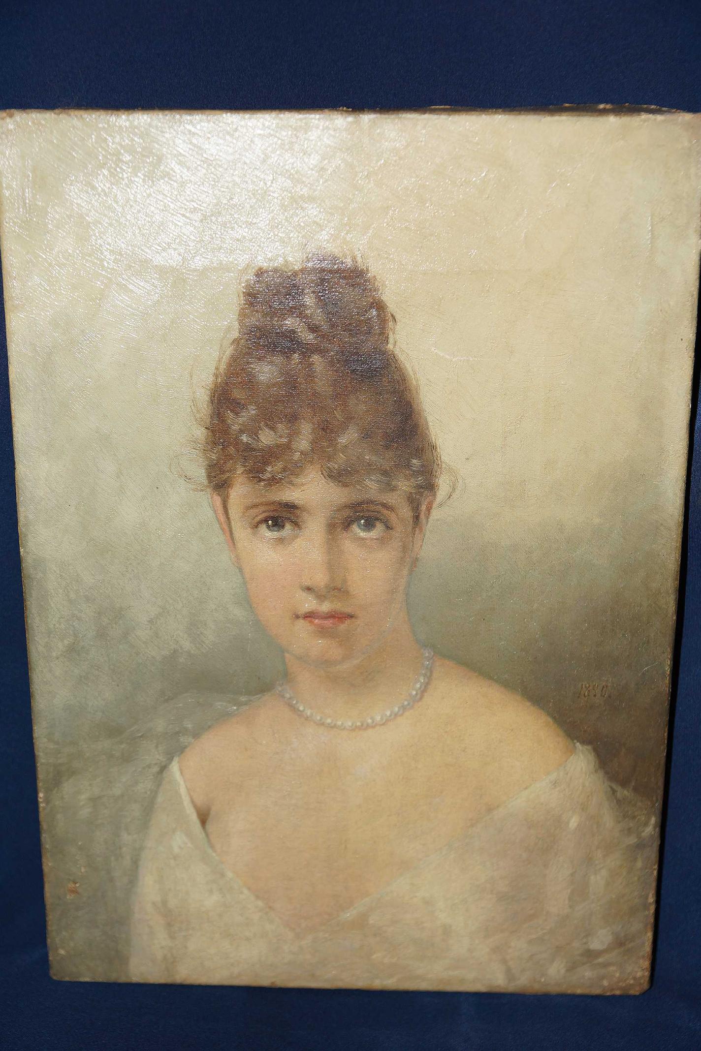 Портрет Императрицы Александры Феодоровны Романовой (Принцесса Алиса Гессенская) в возрасте 18 лет. Холст, масло. Российская Империя, 1890 год.