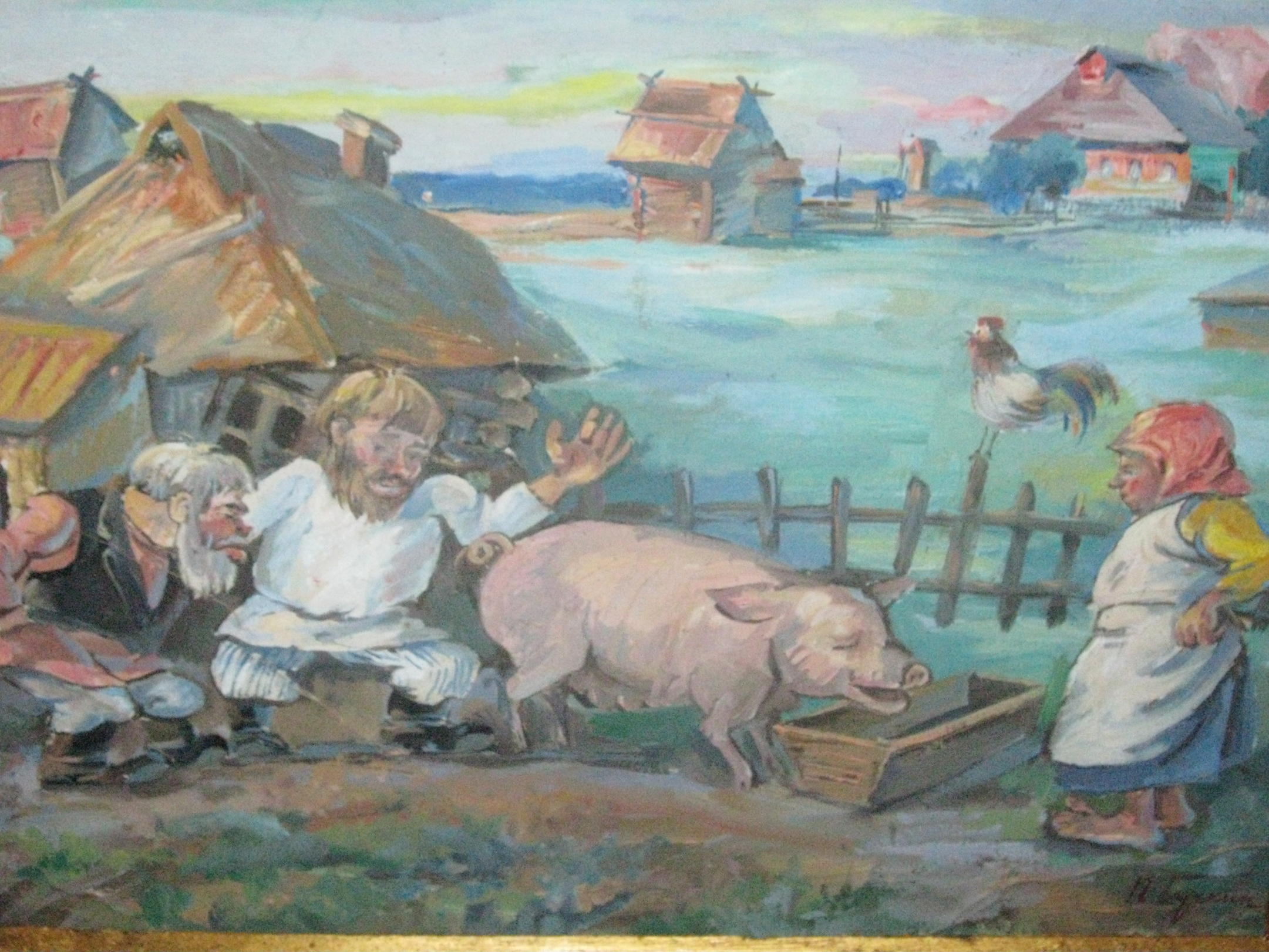 это с известной сатирической акварелью П. Бучкина из собрания Пермской государственной художественной галереи.