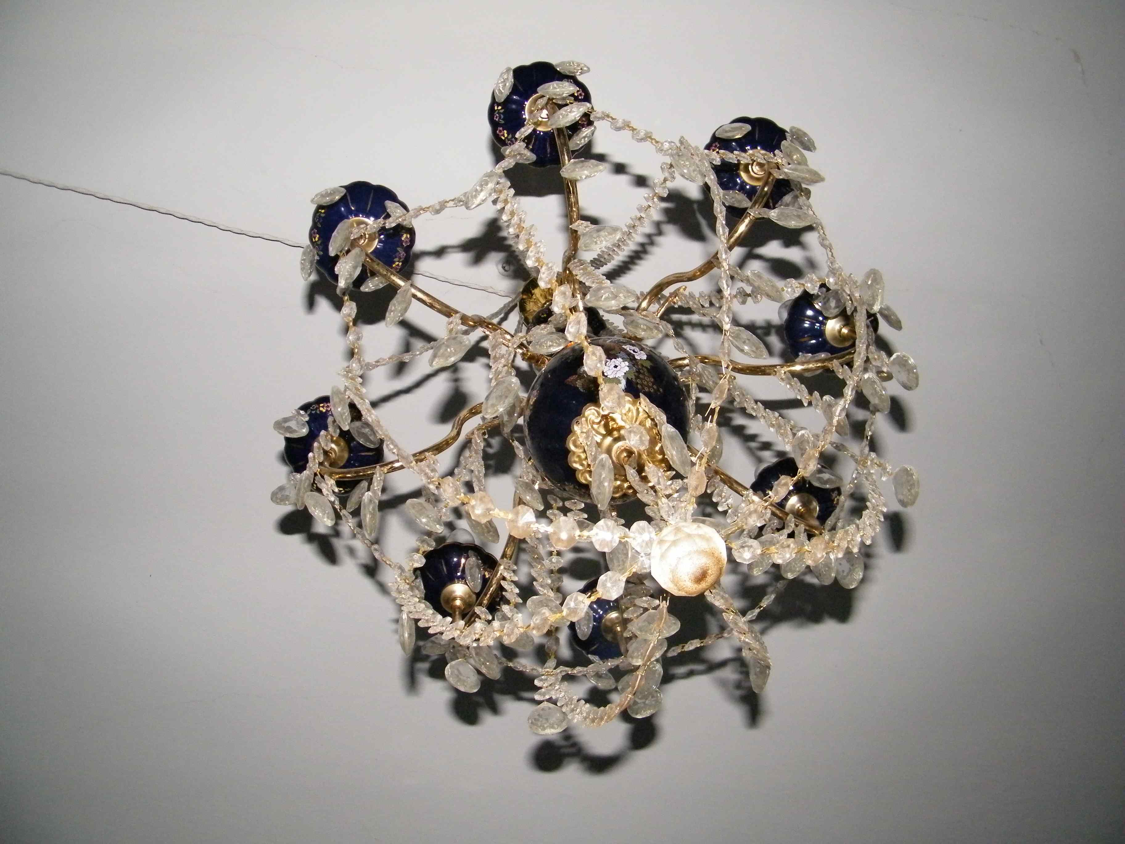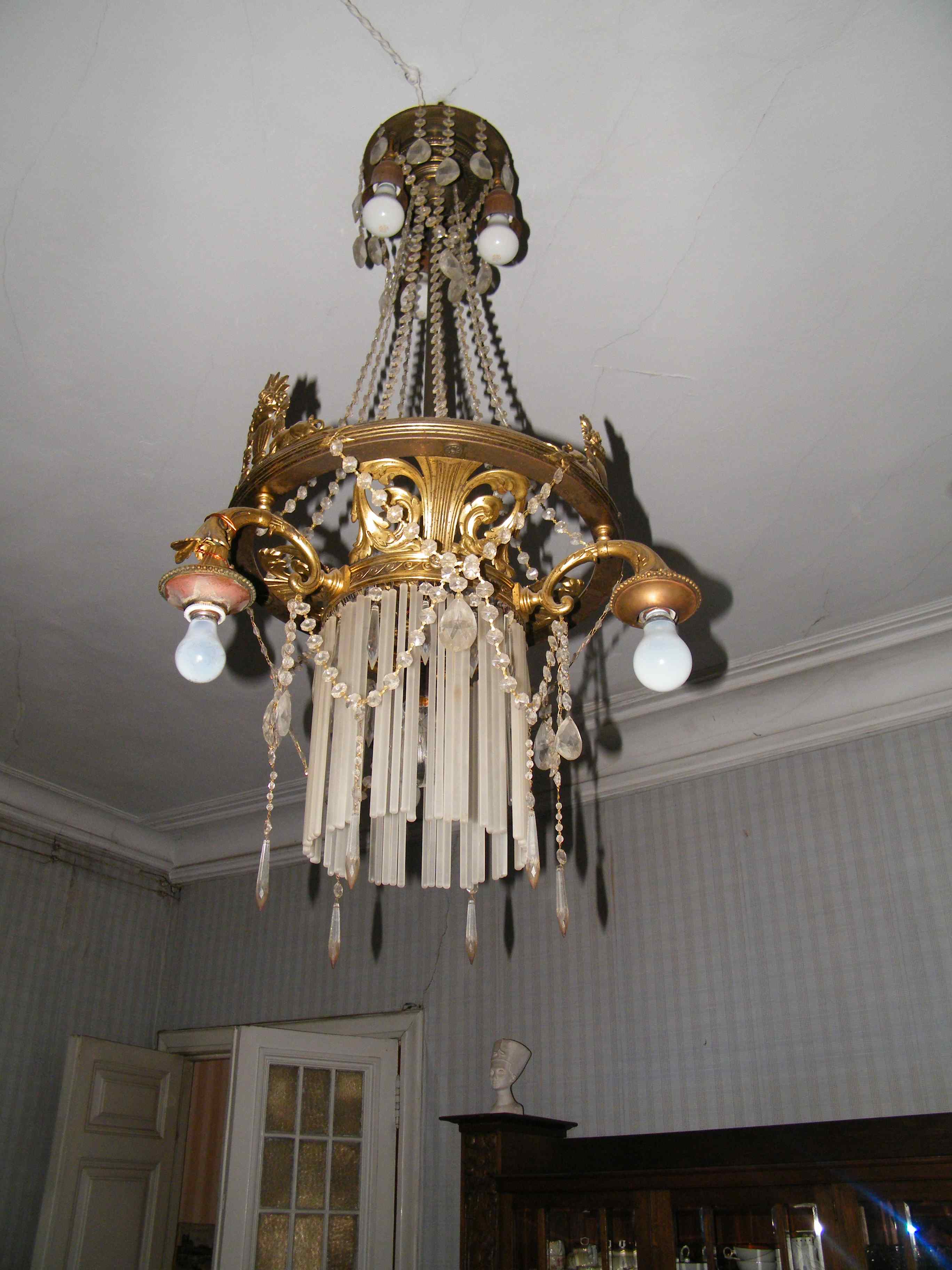 3. Люстра стеклянная, начало 20-го века. Высота с подвесом 110 см, 8 рожков.