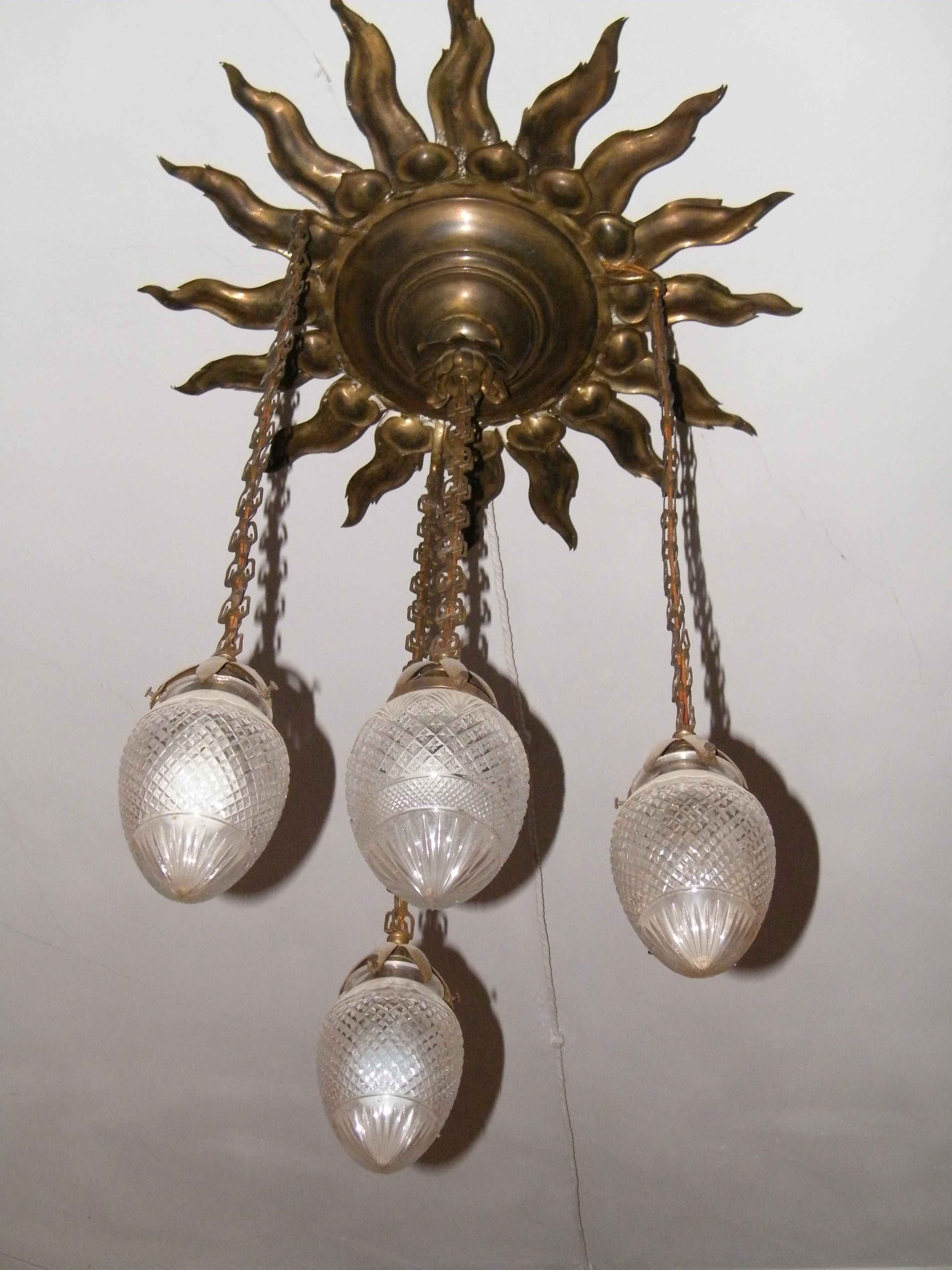 2. Люстра оригинальная (редкая), латунь, 19-ый век. Высота с подвесом 90 см, 4 рожка.