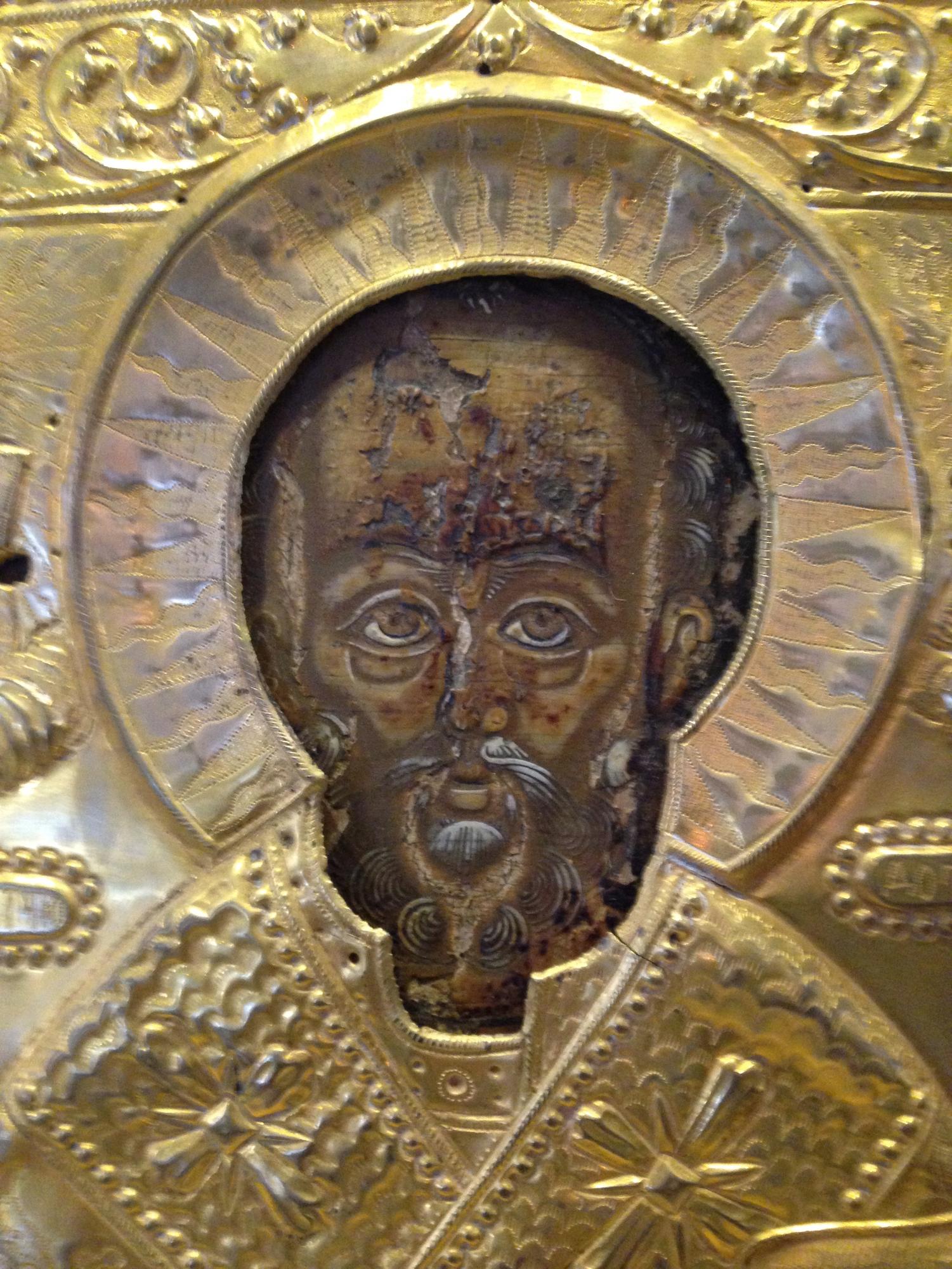 Приятель попросил оценить "наследство" киот 43х39 икона 30х26. Поправьте меня, если ошибаюсь: Киот н. ХХ века, не родной, кр.дерево,родное стекло. Оклад латунь.Сама икона "рубежная", материальной ценности не представляет. У меня один вопрос, если всё правильно, доска не более ранняя? Заранее благодарен за любой ответ.