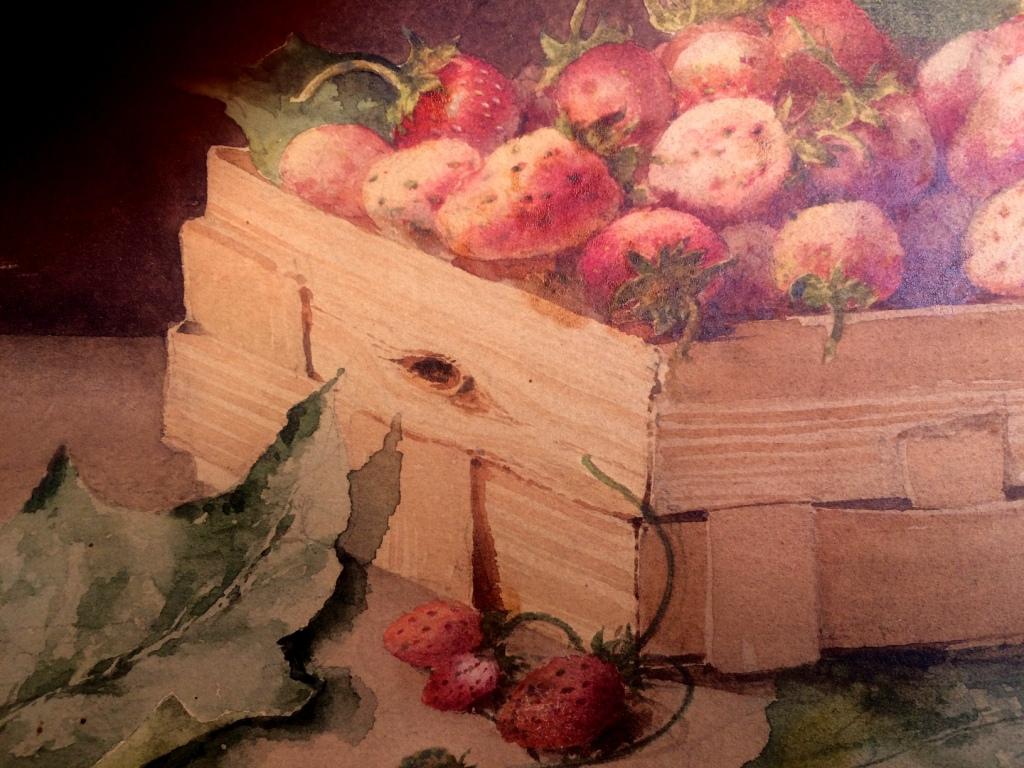 Редковский Андрей Алексеевич(1831-1909),,,Корзина с с клубникой"(усл.),бумага на катроне/акварель.26х34,5 в свету 22х33,с рамой 51х62,1901 г.