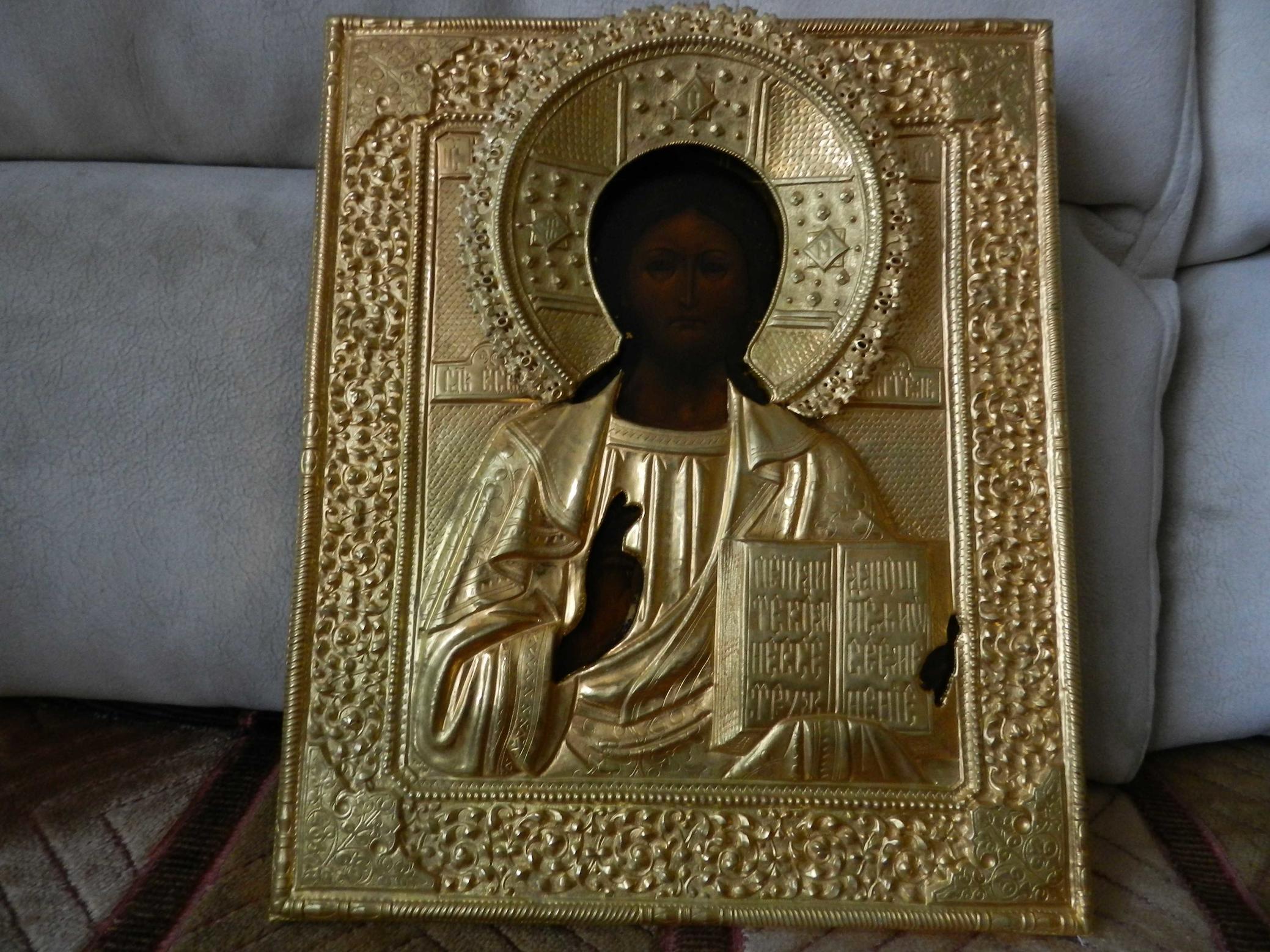 Икона Господь Вседержитель, в золоченом окладе, 31*26,5 см.