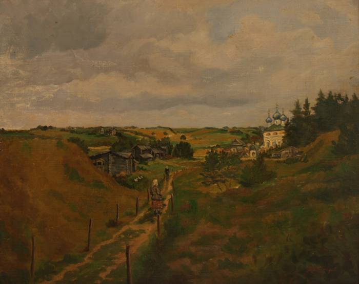 На сей раз представлена работа на холсте, довольно большого размера и даже с тщательно нарисованной подписью "в стиле".