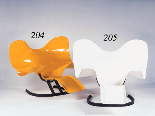 designed 1966, artist-authorised 1985 reedition of 100 examples by Michel Roudillon, red polyester form on black enamelled welded steel frame, impressed to rear 560, and with facsimile signature Rancillac, accompanied by relevant numbered certificate, ink-signed Rancillac