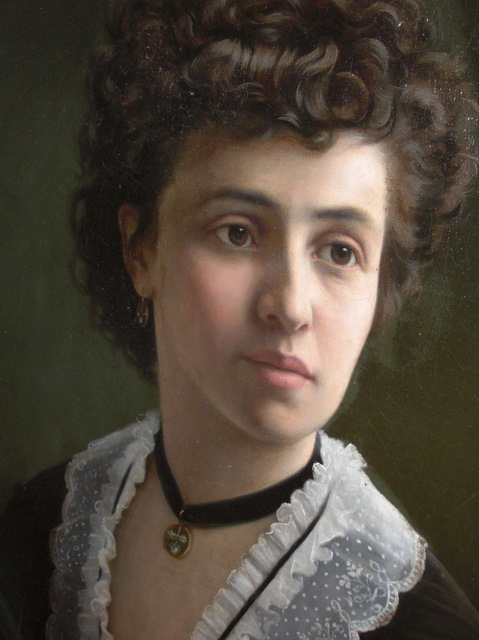 Портрет женщины.Художник Gutsch.C 1850-1890. Вена .Художник известен как автор портрета императора Фрнца Иозефа.Холст,масло,овал.Размеры 65 на 55 см.Состояние отличное.Заказан новый багет.