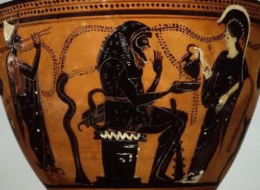 "О, этот вепрь сильно досаждает и нам, обитателям этой горы. Я укажу тебе его след. Но сначала будь моим гостем. Меня зовут Фол. Я, в отличие от своих собратьев, чту закон гостеприимства. Заходи в мою пещеру, я налью тебе чашу доброго вина".