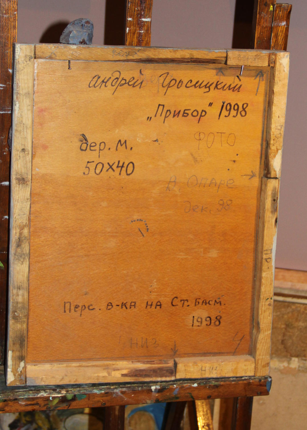 Андрей Гросицкий "Прибор 1998 год",дерево/масло, 50х40 см, 1998 год.