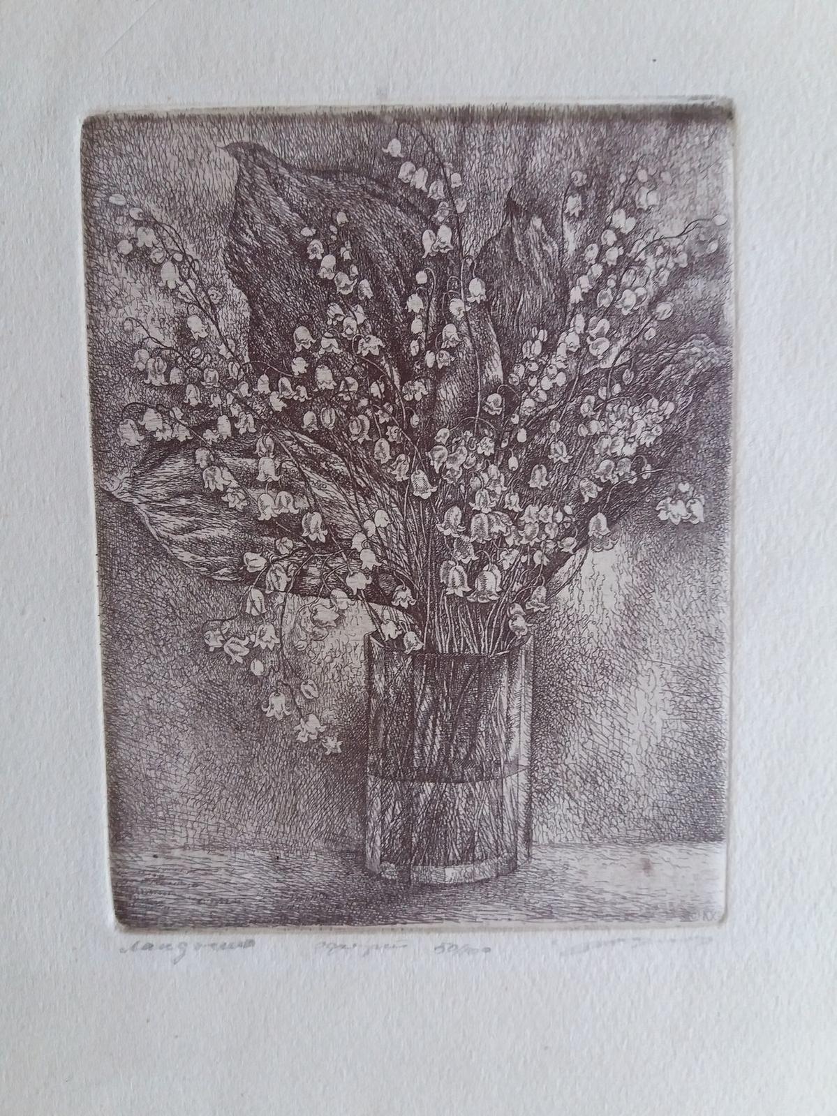 — Соловьиные места. Название, 78 г., подпись. В раме. 12000 руб. — Первые цветы. Без подписи, но оттиск отличный. 12000 руб. — Арочный мост в Грузинах. Название, 78 г., подпись. 15000 руб. — Дом Олениных. Название, 78 г., подпись. 15000 руб. — Дом Полторацких. Название, 78 г., подпись. 15000 руб. — Торжок. Подпись. 15000 руб. — Зимний Торжок. Название, 78 г., подпись. 15000 руб. — Гостиница Пожарского. Название, 78 г., подпись. 15000 руб. — Бабочки. Название, 9/80, III состояние, 1976 г., подпись. 15000 руб. — Ландыши. Название, офорт, 50/100, подпись. 15000 руб. — Пора капели. Название, 48/80, подпись, 89. 20000 руб. — Ростовский кремль. Название, II состояние, 51/80, подпись, 93 г. 20000 руб. — Поле. Подпись. 25000 руб. — Одуванчика пух. Название, 69/80, 2004, подпись. 40000 руб. — Два дерева. Название, 61/80, II состояние, 2005 г., подпись. В раме. 40000 руб. — Заиграли провода. Название, №7, 78 г., подпись, большие поля. 40000 руб. — Старая ива. Название, №12, 81 г., подпись, посвящение. 40000 руб. — Весенние встречи. Название, 45/80, 2005 г., подпись. В раме. 40000 руб. Офорты находятся в Москве, м. Партизанская. |