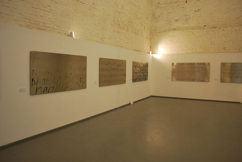 В Галерее Айдан закрывается выставка Евгении Чуйковой, на смену которой придут «плюшевые» абстракции Ростана Тавасиева. Чуйкова запомнилась абстракциями из следов губ в красной помаде - http://aidangallery.ru/authors/chuikova. А теперь показали другой женский прием – лак для ногтей, выведенные надписи по металлу. По легенде это фразы, вырванные из сообщений в социальных сетях. Вспоминается анекдот, как студент прочитал статусы друзей в скайпе и наутро сдал экзамен по философии. Серия называется Quick Dry – Быстросохнущий. И технологически, вероятно, штука вечная. В отличие от экспериментальных материалов с нержавейкой ничего не случится. |
