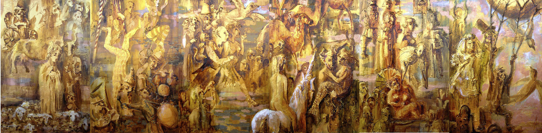Oil on canvas, gold acrylic paint, 90.5 h362sm