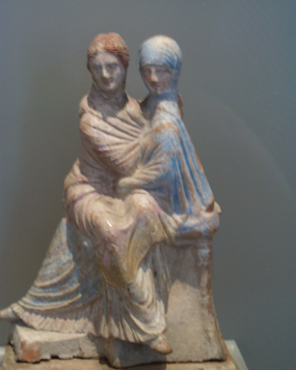 Tanagra statuettes - it polychrome terracotta figurines, which were manufactured in Greece, starting from the 4 th century BC. Apogee this type of small plastic reached to 340-300 BC, when they spread around the Mediterranean coast of the laity. He disappeared around 200 BC The earliest figures, dating from the 6-m. BC, have been sculpted by hand and solid, and later sculptors began to use the form, is revealed as the oyster, the lower torso and head are modeled separately, allowing the opportunity to significantly increase production while maintaining a wide variety of hollow figurines.
