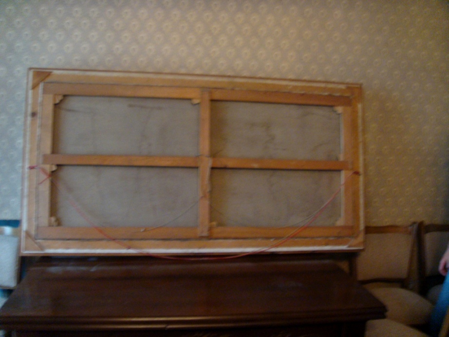 Came a friend of America , went to 90 . Sells the remaining paintings here . He says he bought them in 1978 through the intermediary of a famous collector ( I do not know anyone , but I know it's only in PM at the request of the owner ) . Both paintings are in good condition , judging from the back - both were restored , mounted on a new canvas , there is nothing behind , except for divorce and dust . And one - the marks of nails . On one of them sign GE, but he says it's Laszlo Mednyansky , is another - marina , the signature difficult to read - P. Misin ( Mishin , Tishin ) Photographed with me - it has not, but tried very hard . Rama's relatives - gilding on plaster in some places fell off small chunks . So : GE ( Laszlo Mednyansky ? ) " Everglade Land " , x /m , 167 x 78