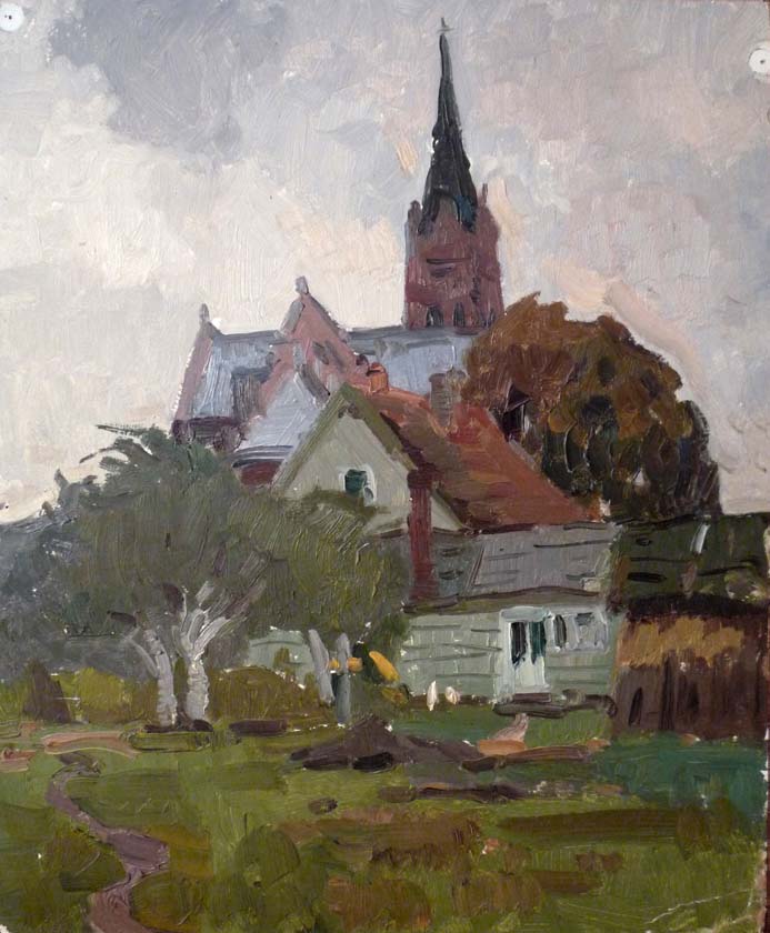 In the late 1950's Lel Kuzminki several years went to the house of creativity in Palanga (Lithuania). These were the years 1956-59. From the artist's journeys brought a lot of studies, wrote a series of portraits of Lithuanian artists and sculptors. Among them are the oldest Lithuanian painter Kazys Shimonis (1887g.r.) Sculptors Inessa Sirgeda and Stephanie Bugaylishkene (1921g.r.). Many studies have been devoted to the nature and attractions of Lithuania. Interesting fact: The Sketch "old boat", as shown in the next reporting show home has been criticized in the press. Jealous "kommunyatskoy morality" has accused the artist in the glorification of the old junk, instead of glorifying achievements of the Party and people.