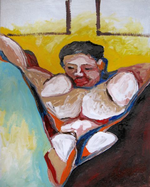 Здесь собрал работы, в которых присутствует чашка кофе. Опять символ, что означает, не знаю..может утро? или задумчивость? мысли? 1. Розы и кофе. Некоторые считают,что это чуть ли не лучшая моя работа. 50 на 60 см,оргалит,эмаль. Ноги растут из белых портретов Пикассо, были у него такие- в африканском стиле, будто написанные известкой. Там белый цвет создавался всеми цветами радуги. Здесь белого нет, но отливы-переливы есть. И Модильяни отдает немного. А розы и кофе от меня лично. И срослось :-) 2.Три девушки в кафе. Эскиз к большой работе,не сделал. 3. Портрет мужчины (воспринимаю как автопортрет). 4. Портрет девушки. 5. Девушка с книгой. Лиловым пользуюсь редко, вот заставил себя. 6. Лев. Не спрашивайте зачем венок из роз и почему чашка не белая- сам не знаю,просто хотелось зеленую тень от носа написать, остальное само пришло. 7. Апельсины у открытого окна. Крохотный эскиз на бумаге к работе,которую не написал. |