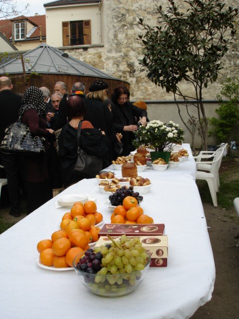 4 апреля в парижской русской православной церкви св. Серафима Саровского (91, улица Лекурб, что недалеко и от Монпарнаса, и от Инвалидов) состоялось отпевание Эдуарда Штейнберга. Эдик был прихожанином этой церкви - быть может, не таким усердным, как ему самому хотелось бы, но был. В общем, к 15 часам был привезен гроб с телом покойного, и народ долго заходил в эту церковь - скромную, деревянную, находящуюся во внутреннем дворике. Особенность этой церкви - это что на месте, где она стоит, было дерево, и архитектор решил его сохранить - и спиленное (довольно толстое) дерево держит крышу, являясь частью архитектурной конструкции, так сказать. Трудно сказать, сколько было народу; по моим прикидкам, человек 100-120 (если не больше). Причем изрядная часть была - французы (возможно, его коллекционеры, завсегдатаи галереи Клода Бернара, который выставлял живопись тов. Штейнберга). Стояли, в общем, довольно плотно, так что в определенный момент, когда желательно опуститься на колени, сделать это оказалось практически невозможно, и все остались на ногах. Среди присутствующих было много людей, так или иначе известных в тех или иных кругах: Арина Гинзбург, Наталья Горбаневская, Татьяна Максимова (вдова редактора "Континента"), Ирина Заборова, Ирина Кривова, Кира Сапгир, художники Эрик Булатов, Борис Заборов, Оскар Рабин, Виктор Михайлов, Ярослав Горбаневский; в общем, много, много кого, включая Александра Глезера, Галину Аккерман, Виктора Глушкова и многих других, которых я могу знать лишь по имени и не признал в лицо... (Кого? - спросит читатель. Да например, Лариса Волохонская, которая записалась в книге посещения, я подглядел...). Вот маленький фоторепортажик с панихиды. Фото 1: на втором плане в профиль: Оскар Рабин (слева) и Александр Глезер (справа). Фото 2: красиво несут, надо сказать... Фотоо 3: Арина Гинзбург, Ярослав Горбаневский, а сзади, бородатый, - это художник Эрик Булатов. Фото 4: стол с угощением для почтивших память великого человека. Были пирожки с капустой, огурцы, водка "Посольская", хорошее бордо (не считая соков, вод и проч.). В общем, всё, что надо, было. Последний раз редактировалось Игорь Гурьев; 05.04.2012 в 05:27. |
