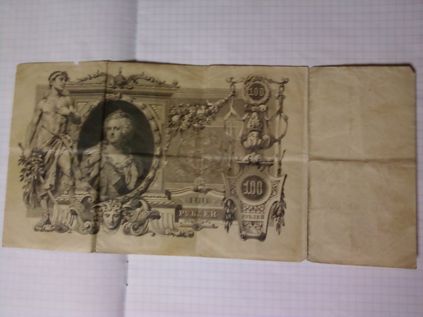 Кредитный билет в "100 рублей" "Катенька" 1910 г. за подписью управляющего Шилова в таком состоянии стоит около 5 - 7 дол.