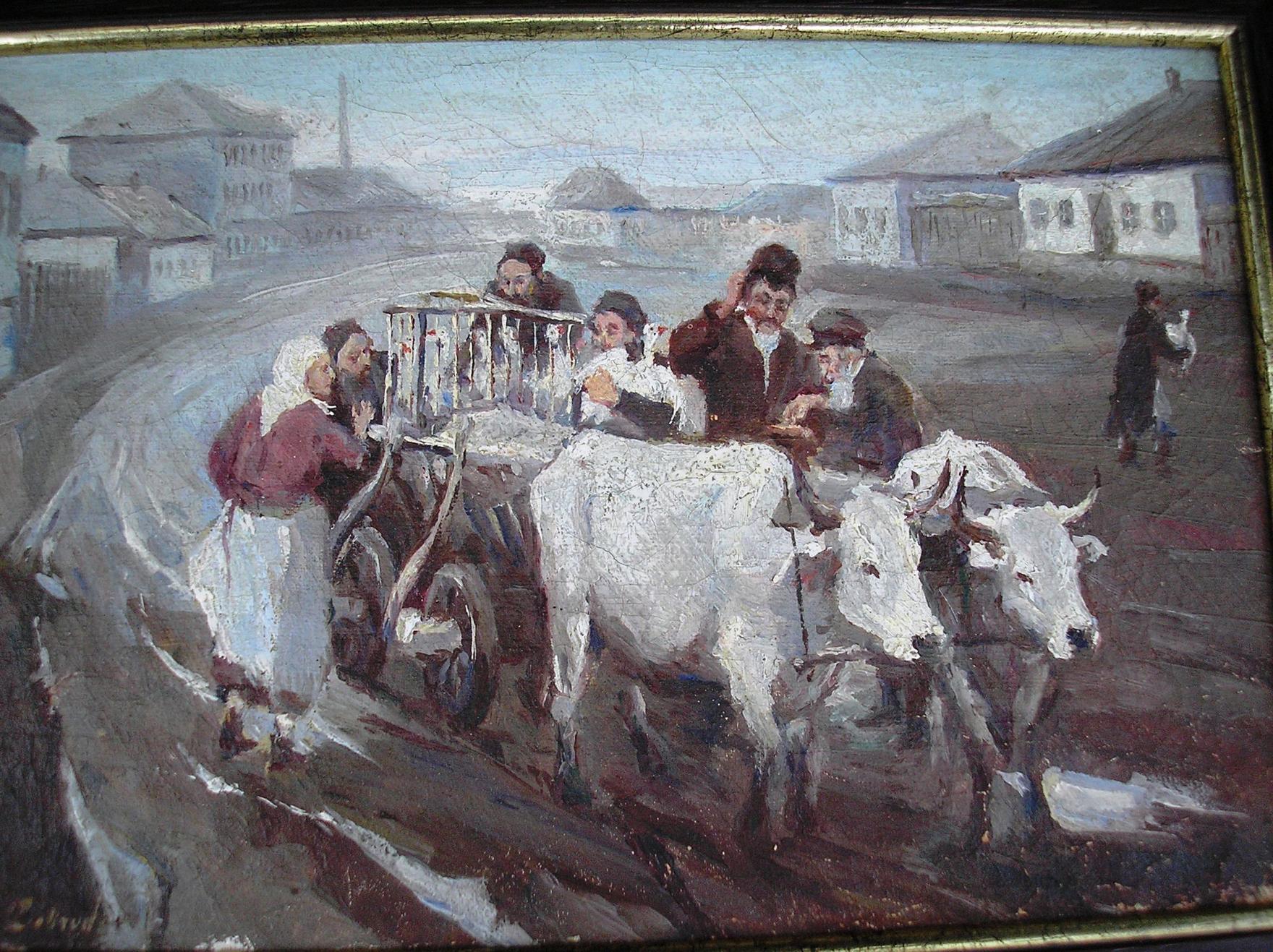 Oil on canvas, signed, a scene from the life of the Jewish shtetl.