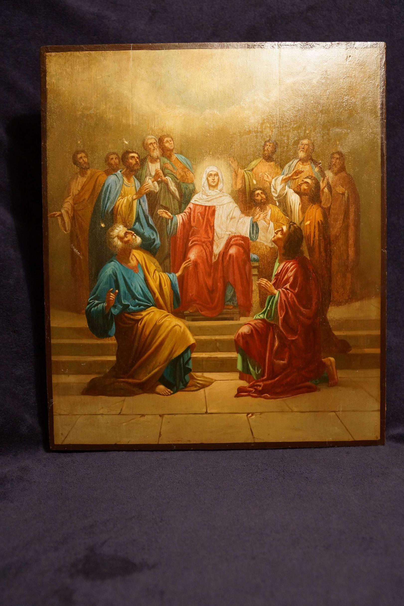 Икона «Сошествие Св.Духа на Апостолов (Пятидесятница)», академическая живопись, написана в СПб. в сер. XIX века.