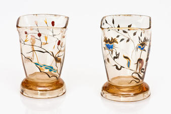 Лот №43, Франция, Лотарингия, Нанси, Фирма Галле, 1880-е годы, Стекло прозрачное бесцветное и золотисто-дымчатое; роспись полихромной непрозрачной эмалью, золотом, шлифовка, Полная сохранность, за исключением незначительной потертости золота в росписи, Поднос - 30,1 х 22,5 х 3,5 см; графины - высота с пробкой: 20,1 см, диаметр основания: 5 см, корпус: 8,1 см; стаканчики - высота: 5,5 см, диаметр основания: 3,5 см, корпус: 3 х 3 см Тональность стекла, из которого выполнен комплект для ликера, разработана Эмилем Галле в 1870–80-х годах. Золотистый оттенок стекла, похожий на топаз, получил известность наряду с голубым тоном стеклянной массы под названием «лунный свет». Этот период творчества Галле называется «прозрачным» / Одно из лучших творений Художника 236 000 — 275 000 руб. Последний раз редактировалось stankoufman; 12.11.2013 в 16:39. |