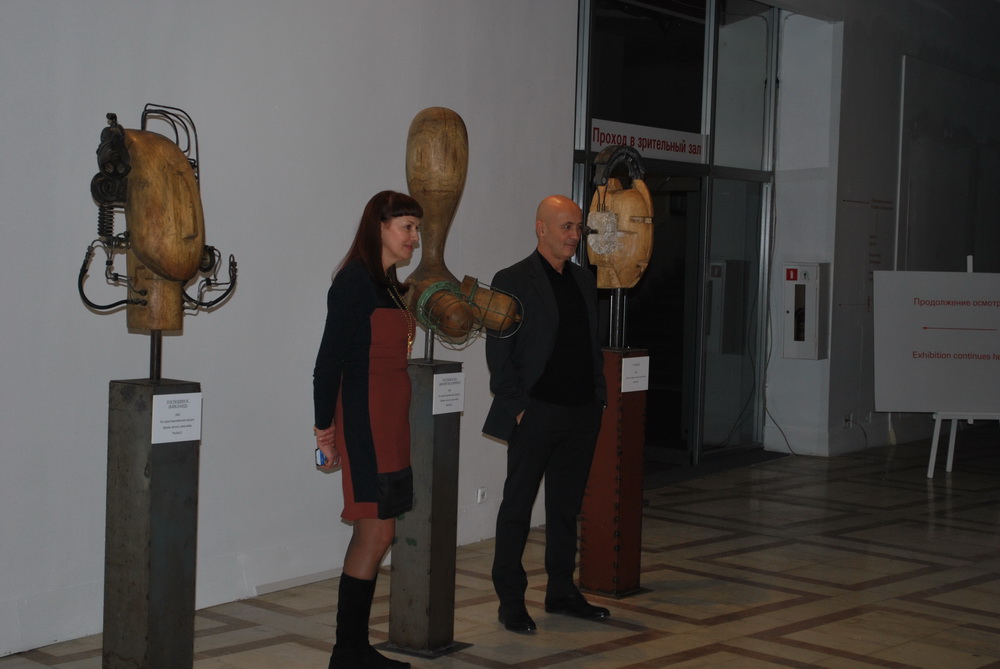 В "Ударнике" на первом этаже проходит выставка Александра Соколова (1941-2009) - скульптора, восьмидесятника, однокурсника Бориса Орлова и Леонида Сокова. По общей гротескности и острой реакции на политический момент отдельные представленные работы созвучны с поздним соц-артом, но говорят, что сам скульптор таких параллелей не одобрял. На небольшой выставке из собрания Шалвы Бреуса представлены работы 1990-х и 2000-х годов - диалоги с великими скульпторами, произведения библейского цикла и др. объекты.