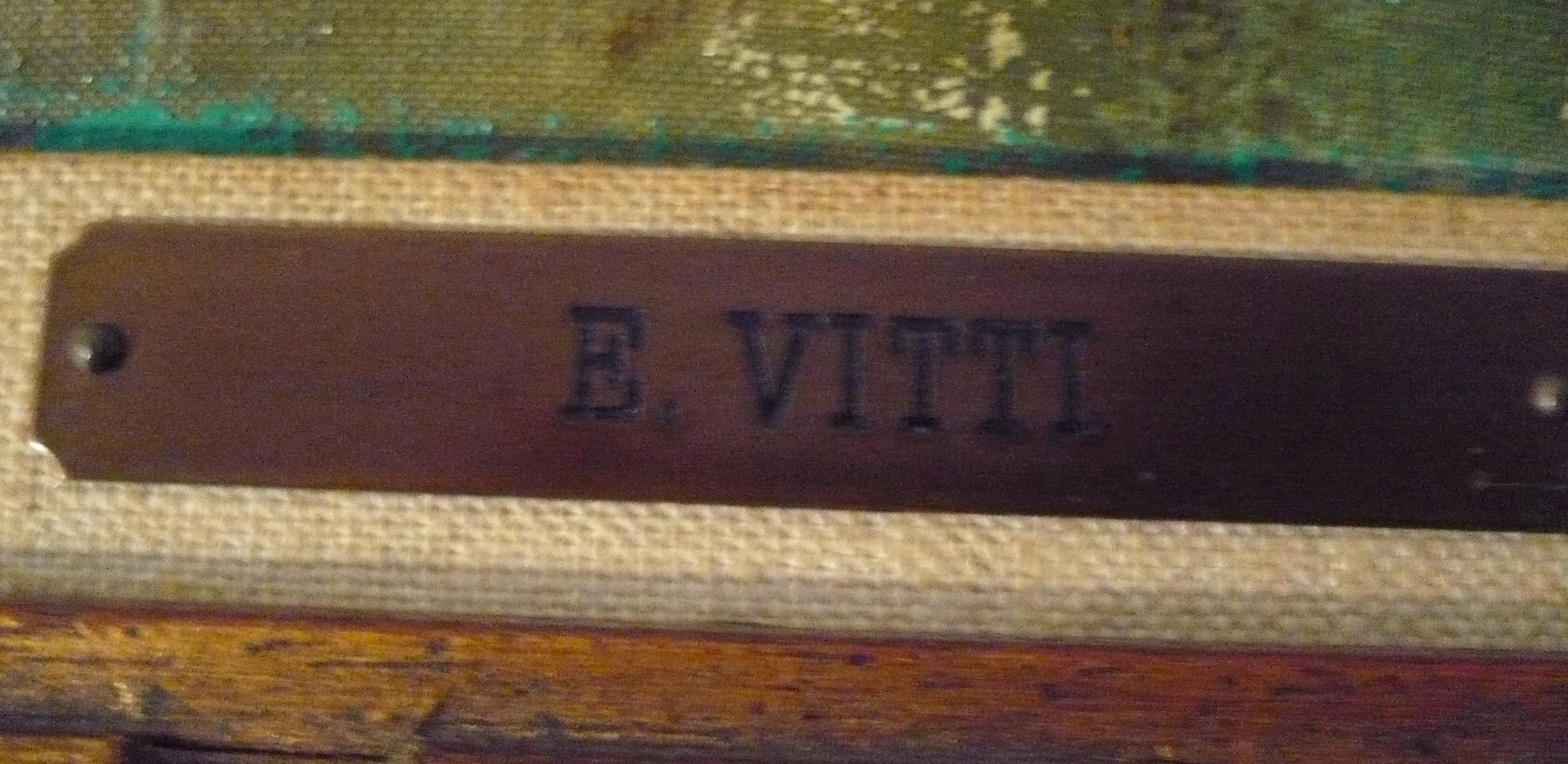 Hello experts, help пожайлуста determine whether the painting is valuable and to evaluate its cost. The painting was brought from America, age is not known, but appear to be very old. The painting is signed by E. Vitti and bottom of the picture metelicheskaya plate with the name of the author.