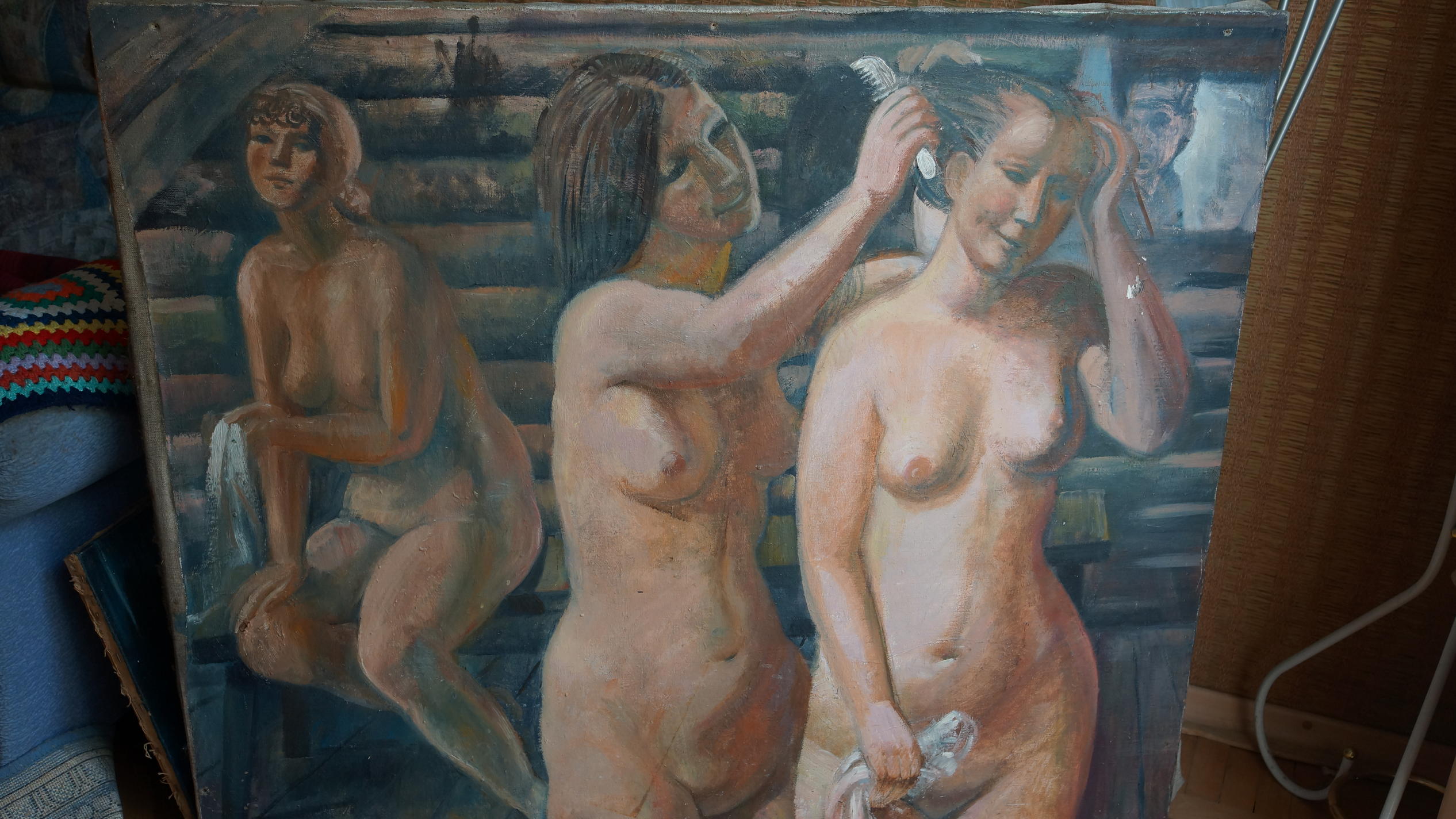 НХ, картина «Деревенская баня с подглядывающим». Холст, масло. СССР, 1960-е гг.