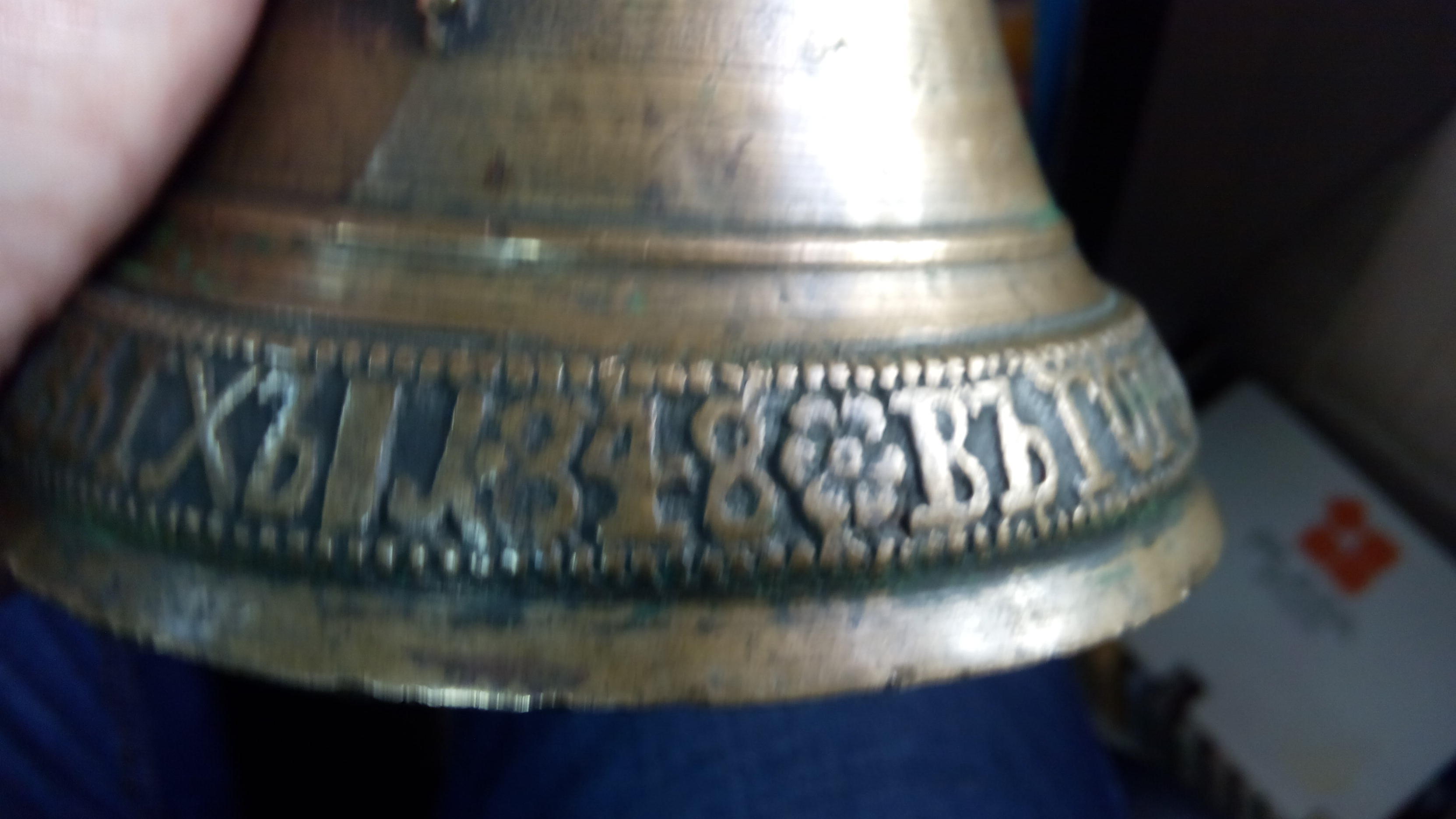 Судя по присутствующим на фото пальцам, это не колокол, а поддужный колокольчик.